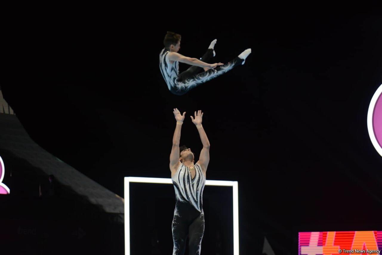 Выступающие в составе мужской пары Даниэль Аббасов и Мурад Рафиев, представляющие Азербайджан, с результатом 27.500 балла завоевали бронзовую медаль 28-го Чемпионата мира по акробатической гимнастике в Баку, передает Day.Az со ссылкой на Trend.