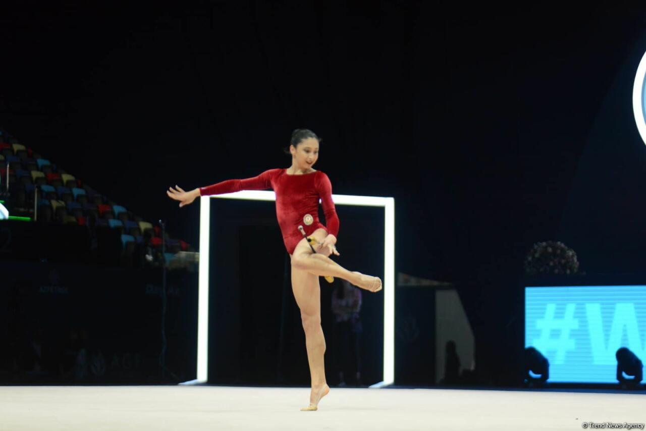 Арзу Джалилова и Зохра Агамирова представили программу с булавами на Кубке мира FIG в Баку - ФОТО