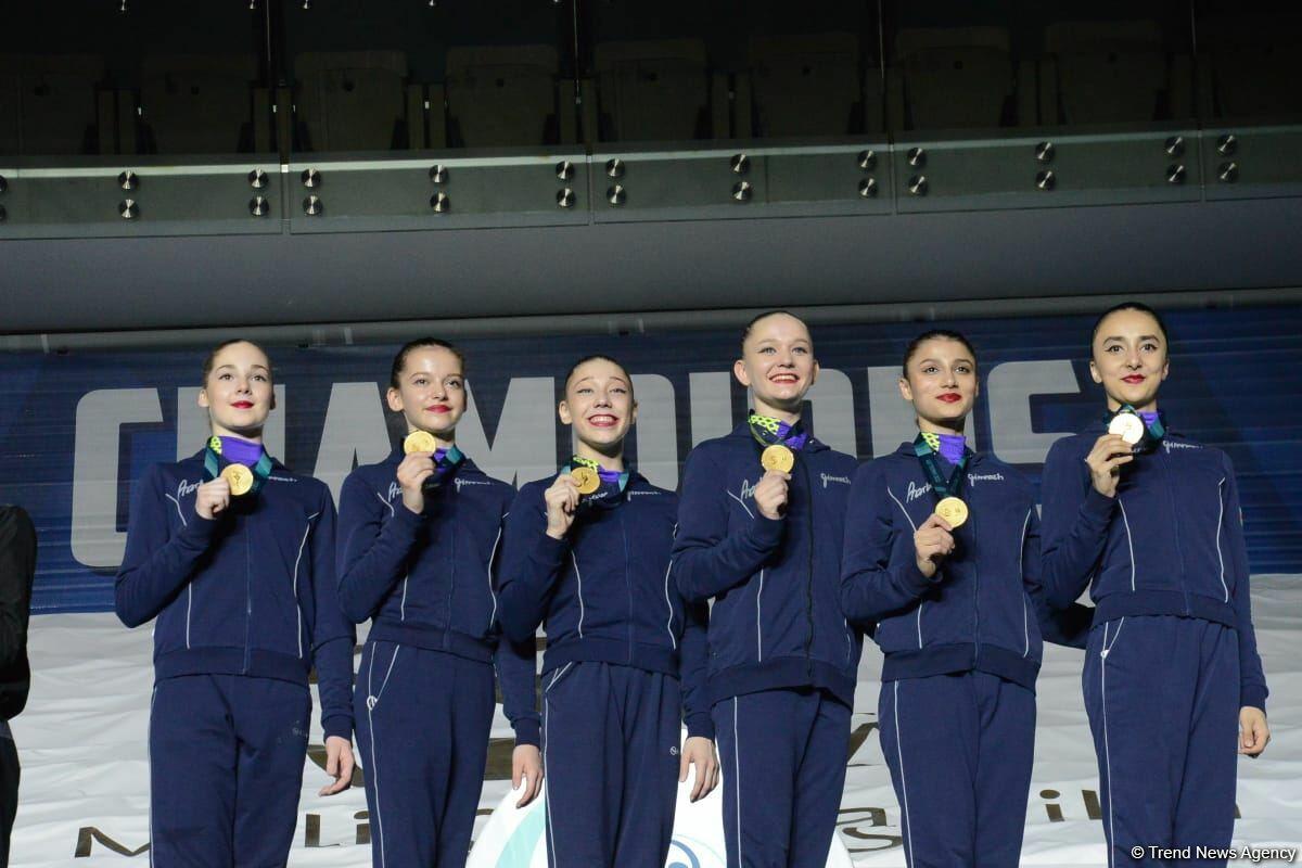 Медали победителям и призерам вручили министр сельского хозяйства Азербайджана Инам Керимов, член Технического комитета по художественной гимнастике FIG (Международная федерация гимнастики) Любовь Черкашина, директор Национальной арены гимнастики Максуд Фарзуллаев.