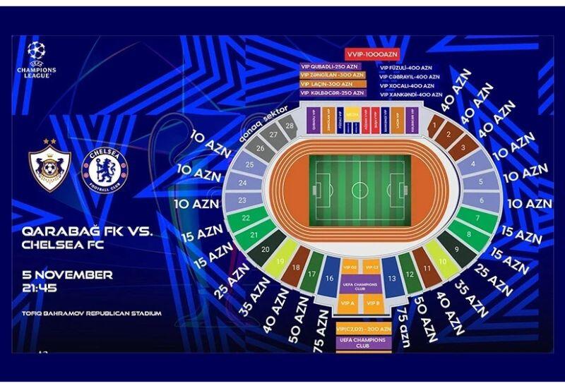 Началась продажа билетов на матч основного этапа Лиги чемпионов УЕФА по футболу между азербайджанским "Карабахом" и английским "Челси". Как передает Day.Az со ссылкой на İdman.biz, продажа билетов стартовала в 15:00. Стоимость стандартных билетов составляет 10, 15, 25, 35, 40, 50 и 75 манатов.