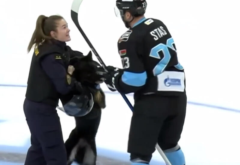 Собака вцепилась зубами в двух хоккеистов перед матчем - ВИДЕО