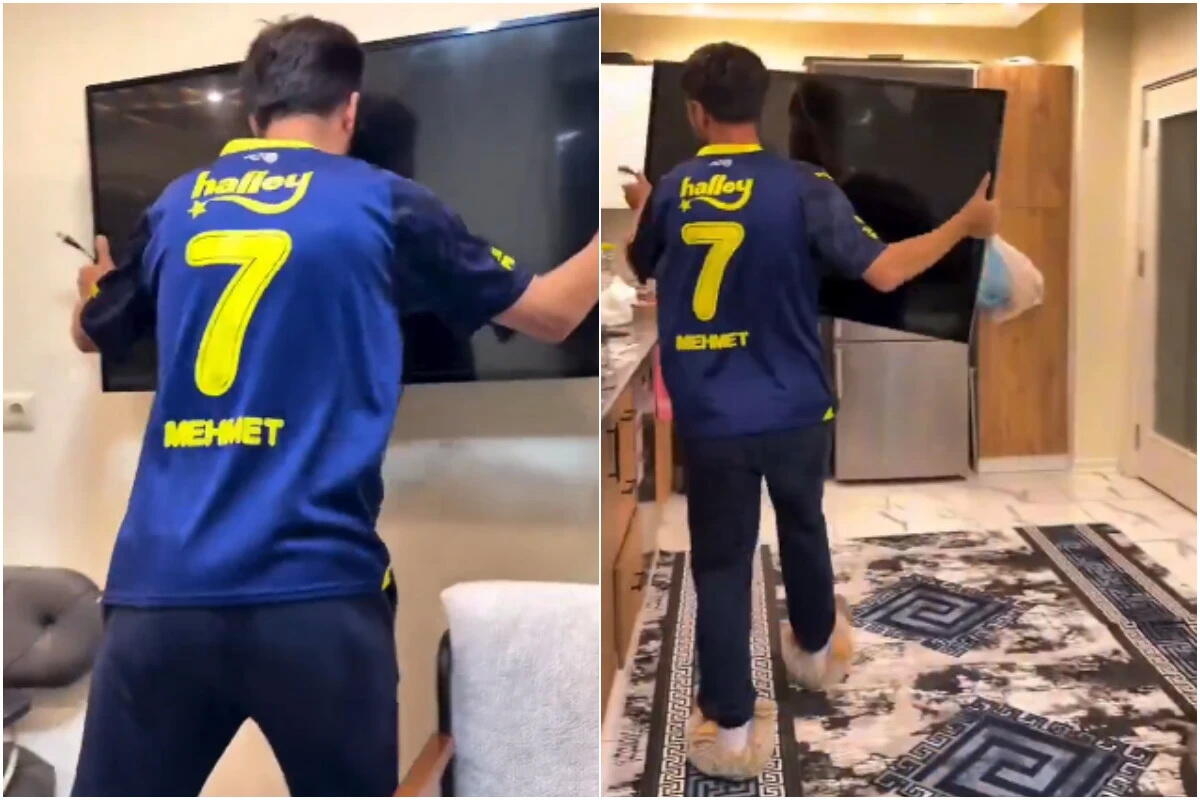 Фанат "Фенербахче" разбил телевизор после разгрома в дерби - ВИДЕО