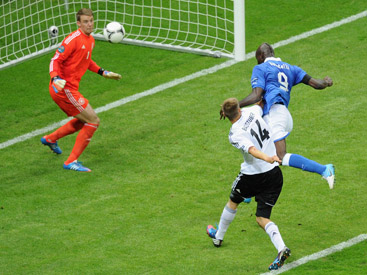 Казалось, стоит Германии еще чуток прибавить, и первый в матче гол не заставит себя ждать. И он действительно состоялся - только в ворота самих немцев! Балотелли после передачи Кассано, почти не напрягаясь, выиграл верховую борьбу у Бадштубера и головой вколотил мяч в сетку! Ай да Италия! Балотелли же в награду за гол удостоился заслуженной приставки от диктора варшавского стадиона - СУПЕР-Марио.