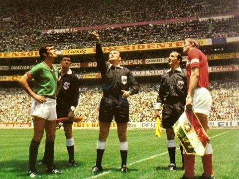 За два дня до финального поединка арбитр Руди Глекнер из Лейпцига был уведомлен, что ему поручается судить решающий матч девятого чемпионата мира по футболу. Назначение было неожиданным, поскольку до этого он судил лишь один матч чемпионата. Но руководство ФИФА решило рискнуть и оказало ему такую честь. Ровно в полдень 21 июня Глекнер вывел на размокшее поле стадиона "Ацтека" в Мехико сборные Бразилии и Италии. Забегая вперед, скажу, что финальный поединок не принадлежал к лучшим матчам чемпионата.
