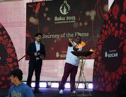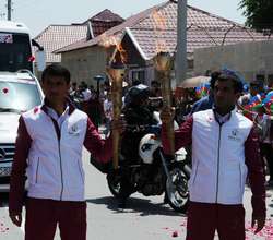 Как передает Day.Az со ссылкой на АЗЕРТАДЖ, факел был встречен на перекрестке городских улиц Кероглу и Огуз, у символических ворот Игр. Принял факел житель района, представитель интеллигенции Таги Мамедов.
