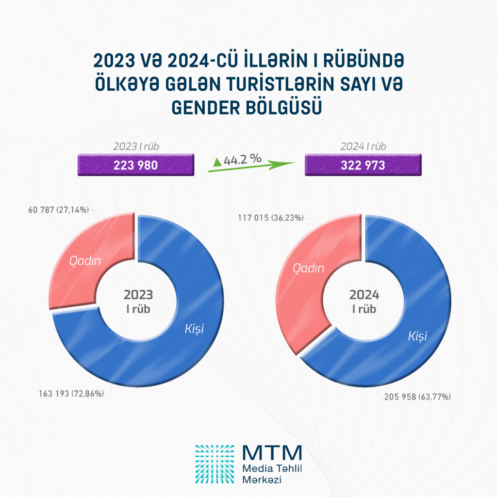 "Если в I квартале прошлого года число иностранных граждан, посетивших с этой целью Азербайджан, составило 53 тысячи 659 человек, то в I квартале 2024 года этот показатель снизился до 50 тысяч 486 человек. Также отмечено снижение числа туристов, приезжающих в Азербайджан по работе. В первом квартале текущего года число таких туристов сократилось на 30,9 процента по сравнению с первым кварталом 2023 года и составило 38 тысяч 895 человек.