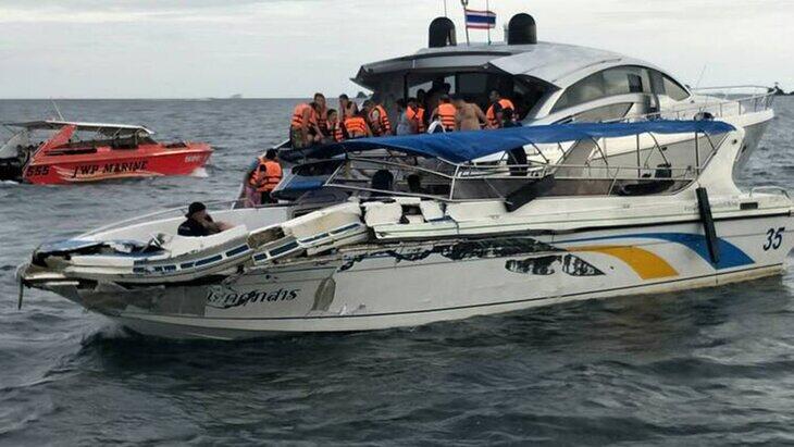 Скоростная лодка с туристами столкнулась с рыболовным траулером у берегов Пхукета и затонула, несколько человек пострадали.