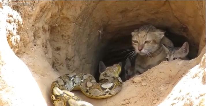 Смотрите, как дикая кошка сражается с питоном, чтобы защитить своих котят - ВИДЕО