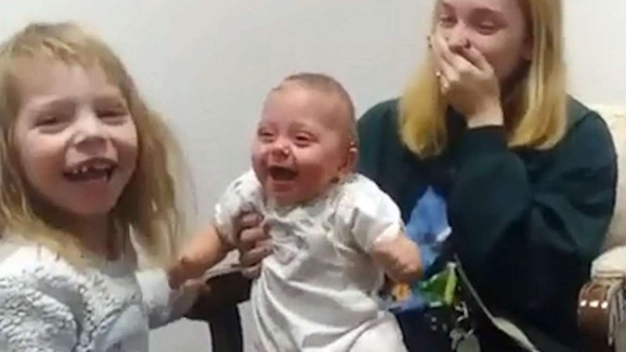 После операции по установке слухового аппарата малышка трогательно отреагировала на первые звуки - голоса своей мамы и сестры. Ролик о том, как Скарлет внимательно слушает старшую сестру, а затем громко смеется ей в ответ, облетел Сеть, передает Day.Az со ссылкой на sputniknews.kz.