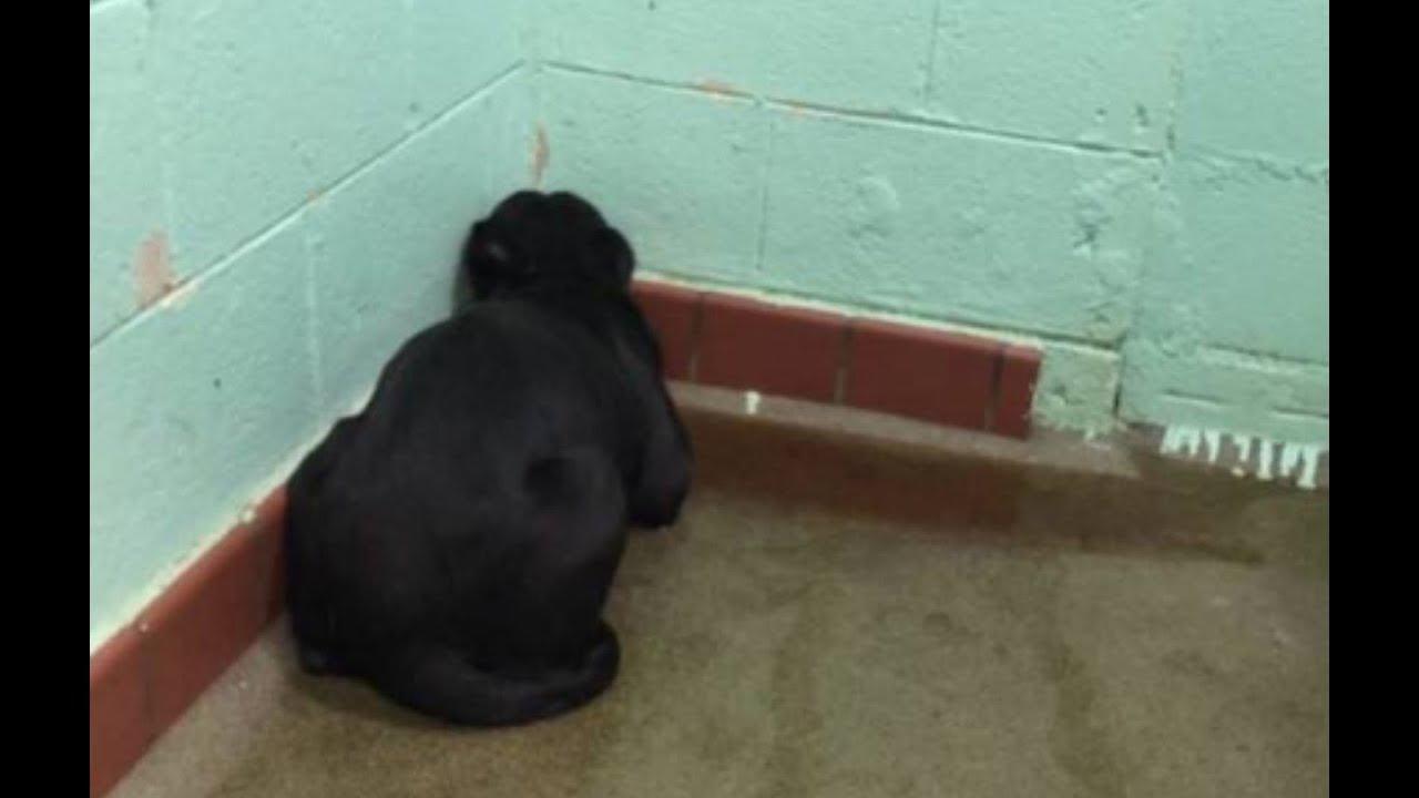 Брошенная собака сидела не двигаясь, прижавшись к стене. Когда в приюте поняли, все пришли в ярость - ВИДЕО