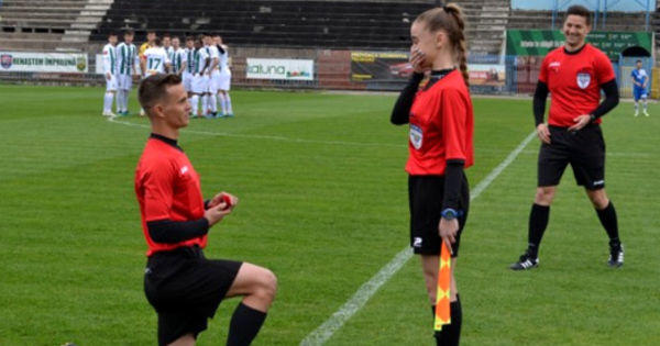 В четвертой румынской лиге по футболу боковой арбитр Мариуш Матица предложил руку и сердце Гьоргие Думе, работающей ассистентом рефери. Видео появилось в Twitter-аккаунте журналиста Эмануэля Росу.