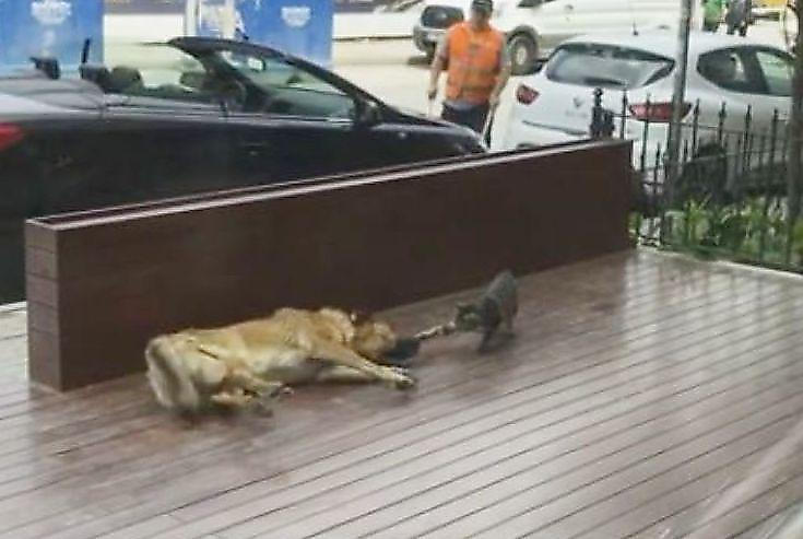 Житель района Бакыркёй (Стамбул, Турция) в начале марта стал свидетелем забавного момента из жизни двух дворовых животных, передает Day.Az со ссылкой нa rai77.com.
