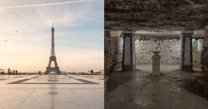 Под всемирно известными видами города в Париже находятся Парижские музеи Les Catacombes de Paris, подземные оссуарии, в которых хранятся останки миллионов людей.