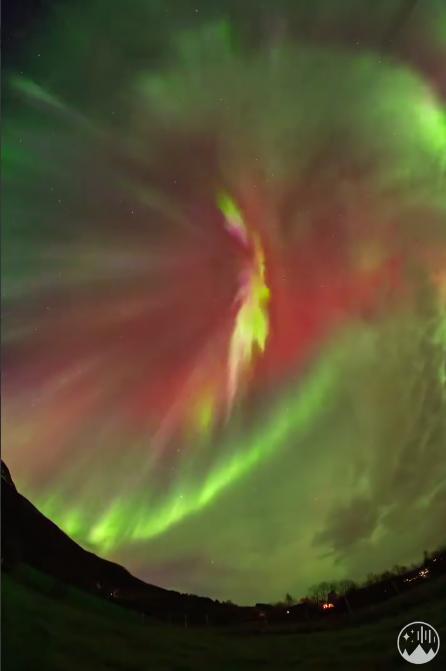 В Норвегии во время мощной геомагнитной бури наблюдалось редкое природное явление - корона северного сияния. Как передает Day.Az, яркие всполохи охватили небо над северными регионами страны, создавая эффект переливающихся зелёных, пурпурных и розовых оттенков.
