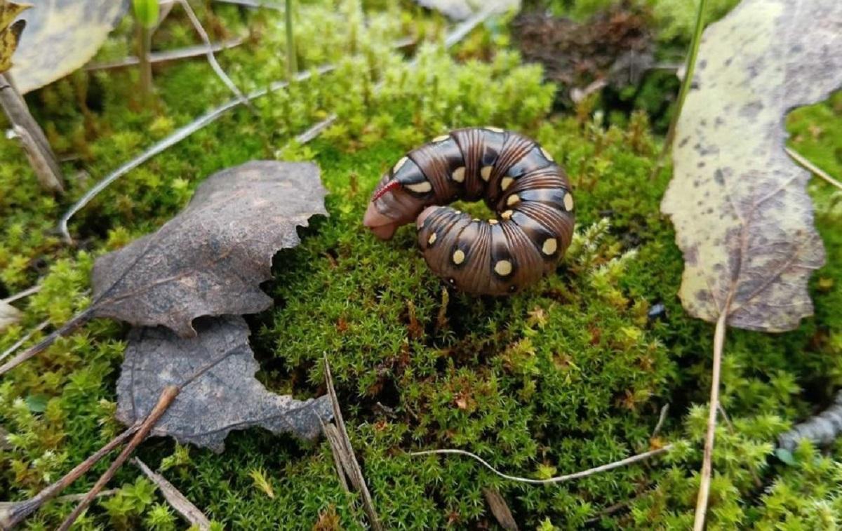 В Чернобыльском радиационно-экологическом биосферном заповеднике зафиксировали невероятно красивую гусеницу - бражника подмаренникового, который имеет рог.