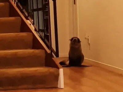 Как сообщают местные власти, за этим молодым тюленем уже наблюдали сотрудники службы охраны природы. Животное сумело пробраться внутрь и устроило себе импровизированное укрытие под посудомоечной машиной.