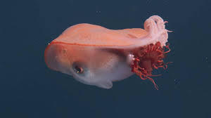 Открытие сделал океанографический исследовательский центр MBARI. Его сотрудники сняли редкого осьминога на видео на глубине 700 метров. В щупальцах он держал медузу-шлемника и поедал ее.