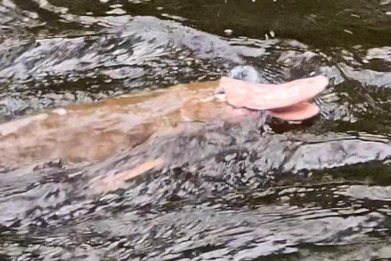 Мужчина сфотографировал редчайшего розового утконоса во время рыбалки