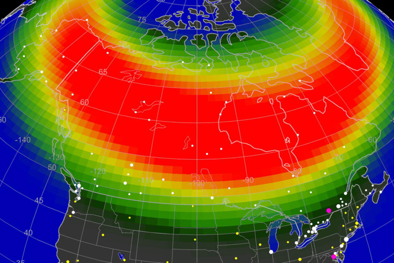 Отмечается, что в настоящий момент в Канаде и над северными штатами США наблюдаются полярные сияния - они уже достигли максимального десятого уровня по интенсивности.