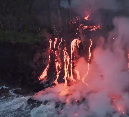 Вулкан на острове продолжает выбрасывать лаву в океан - ВИДЕО