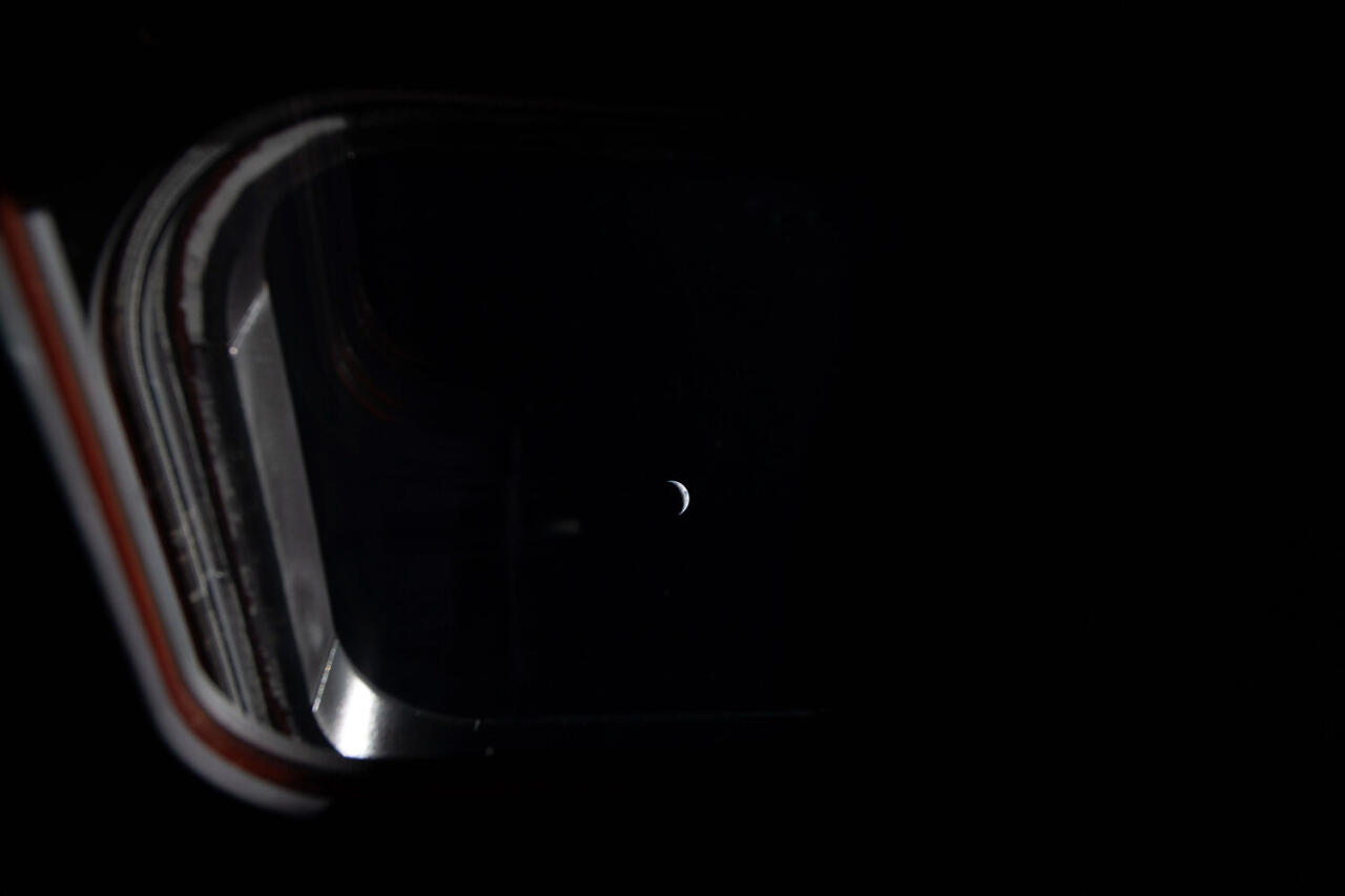 "Если посмотреть в одно из четырех окон космического корабля "Орион" рядом с панелью управления, Земля, освещенная чернотой космоса, становится все меньше по мере приближения к Луне", - прокомментировало фото НАСА.