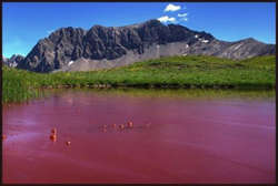 В некоторых случаях "виновниками" розовой окраски воды в озерах являются пурпурные бактерии. В Итальянских Альпах на высоте 1182 м над уровнем моря расположено озеро Лаго-де-Торвел. В летнюю солнечную пору, когда вода в озере нагревается до температуры не ниже 16 градусов Цельсия, оно становится красным. Этим озеро обязано активному размножению в этот период своеобразных микроорганизмов.