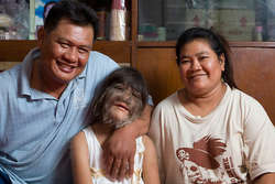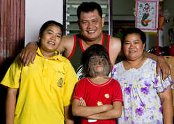 10-летняя Супатра страдает от редчайшего генетического заболевания, которое приводит к тому, что волосы начинают расти у нее на всей поверхности лица. Именно поэтому, девочке пришлось пролить немало слез из-за постоянных издевательств и нападок со стороны своих ровесников. Ее презрительно называли "обезьяноголовой" или же "девочка-волк". Но, сейчас уже все позади. Супатра, после того как прославилась на весь мир благодаря своему внешнему отличию, является одной из самых популярных в своей школе.
