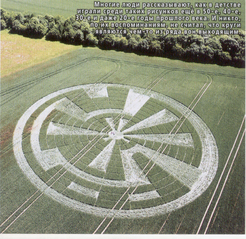 - Безусловно, нет. Сохранилось немало сведений, подтверждающих, что это явление встречалось и гораздо раньше. У меня, например, есть описания кругов на полях, найденных в Ирландии в 20-30-е годы прошлого века. Вообще многие люди рассказывали мне, как в детстве играли среди таких кругов - и в 40-е, и в 50-е годы. По их воспоминаниям, никто не считал эти изображения чем-то необычным. Да, владельцы посевов, конечно, ребятню гоняли, но никому и в голову не приходило куда-то обращаться, что-то изучать. К кругам относились как к чему-то привычному и неизбежному. А еще люди верили, что, если на поле появилась такая отметина, - жди лихих времен.