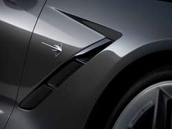 В General Motors утверждают, что новый суперкар позаимствовал у Corvette C6 лишь две детали: шасси, силовая структура, трансмиссия и дизайн - полностью новые. Панели кузова частично выполнены из углеродного волокна (это позволило сэкономить 17 кг), а дизайн экстерьера разработан с учетом гоночных достижений. Дизайнеры Chevrolet заявили, что по силе визуального воздействия новый Corvette сопоставим со Stingray образца 1963 года, однако смелый дизайн, сочетающий элементы, технологичные и позаимствованные у природы, теперь является еще и полностью функциональным.