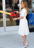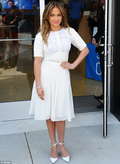 Знаменитая певица Дженнифер Лопес на этой неделе участвовала на открытии магазина Viva Movil в Бруклине (Нью-Йорк). Как пишет Day.Az со ссылкой на The Daily Mail, звезда появилась на открытии в белом плате от Elie Saab и нежных белых туфлях.