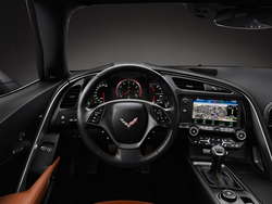 Интерьер Corvette C7 остался разделенным на две части - водительскую и пассажирскую, при этом отделан натуральным углепластиковым волокном и алюминием. Производитель предоставил возможность выбора между двумя типами кресел (GT и Competition Sport), отличающихся степенью комфорта и развитости боковой поддержки. Оба варианта кресел выполнены на основе каркаса из магниевого сплава.