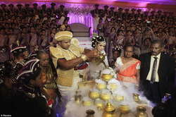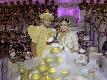 На свадьбе почетным гостем была даже сама первая леди Шри-Ланки Ширанти Раджапаксаэ. Свадьба разворачивалась в садах Авендра в Негомбро, в 30 км от Коломбо, на глазах у сотни родственников и друзей. Присутствующие на свадебной вечеринке - жених, невеста, 126 подружек невесты, 25 друзей мужа и 23 девушки - носительницы букетов - были одинаково одеты в богато вышитые национальные костюмы оттенков фиолетового и золотого. Таким образом, эта свадьба побила предыдущий мировой рекорд в 96 подружек невесты (свадьба проходила в Бангкоке, Таиланд).