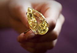 13. Желтый бриллиант в 110,03 карата. Это самый яркий цвет драгоценного камня. Камень на фото стал самым крупным в мире желтым бриллиантом и был продан на аукционе за более 10,9 млн долларов.