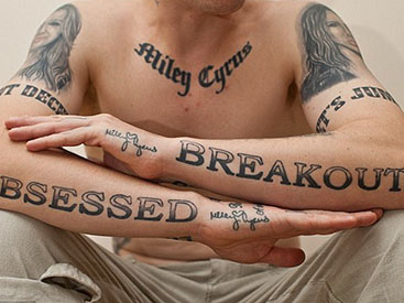 Карл Макколд покрыл практически все свое тело различными татуировками с изображениями певицы. Как сообщает Day.Az со ссылкой на The Daily Mail, он начал следить за каждой новостью о Майли с 2009 года. С тех пор 40-летний Карл успел набить на своем теле более 22 тату с изображением, текстами из песен, цитатами певицы. У него исписана практически каждая часть тела. Из-за его одержимости певицей Майли Сайрус в 2011 году от Карла ушла жена.