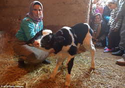 Как передает Day.Az со ссылкой на The Daily Mail, в марокканском горном селении родился теленок, которого хозяева назвали Сана Саида, что в переводе с арабского языка означает "с новым годом". Теленок родился двухголовым.