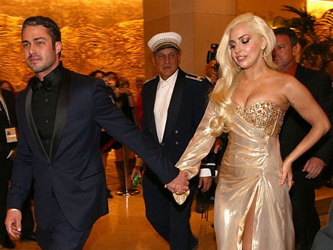 Леди Гага была в приподнятом настроении и вместе с 32-летним Тейлором мило позировала перед фотокамерами.