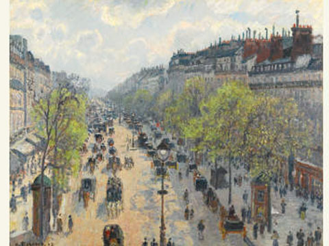 "Бульвар Монмартр" (Boulevard Montmartre, Matinee de Printemps), написанный в 1897 году, входил в коллекцию известного еврейского промышленника Макса Зильбергера, конфискованную нацистами. Наследникам Зильбергера картина Писсаро была возвращена в 2000 году. До начала торгов "Бульвар Монмартр" планировали продать лишь за 7-10 миллионов фунтов стерлингов.