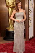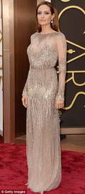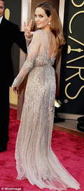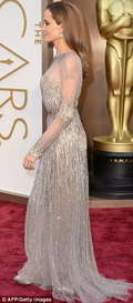 Итак, звездная пара Брэд Питт и Анджелина Джоли, которые не так часто посещают мероприятия, не смогли обойти вручение "Оскара". Анджелина появилась на красной дорожке в роскошном блестящем сером платье Elie Saab в пол, украшенном камнями, а Брэд неотразим в черном классическом костюме с "бабочкой".