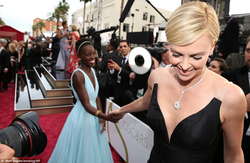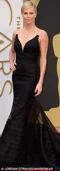 Одним из самых долгожданных появлений премии стал выход Шарлиз Терон. Гостья церемонии выбрала шелковое длинное черное платье с глубоким декольте и оригинальным шлейфом от Christian Dior.