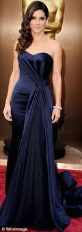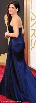 Звезда картины "Гравитация" Сандра Баллок появилась перед зрителями в роскошном синем шелковом платье в пол Alexander McQueen.