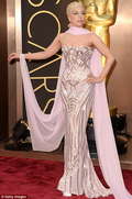 Леди Гага также почтила своим присутствием красную дорожку церемонии "Оскар-2014". Для торжества певица выбрала на редкость скромный наряд - лиловое платье Versace дополнил шифоновый шарф в тон и аккуратные серьги.
