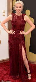 Еще одна номинантка на "Оскар" - Дженнифер Лоуренс. На актрисе алое платье Dior, модного дома, лицом которого она является.