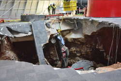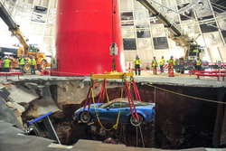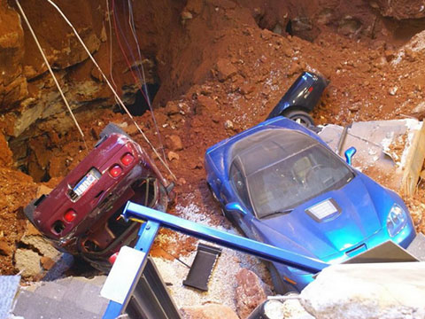 В феврале этого года в Национальном музее Chevrolet Corvette в Кентукки не выдержал пол - восемь редких спортивных автомобилей провалились в яму. Машины начали поднимать - работы могут затянуться на несколько недель.