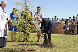 В течение всего утра Уильям и Кэтрин общались с семьями военных, а затем посадили эвкалипт - в память о погибших на службе.
