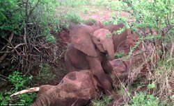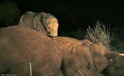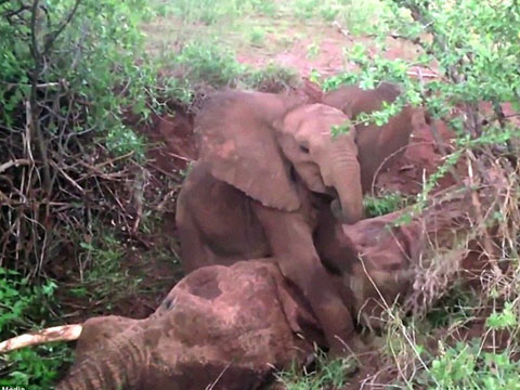 Беспокоящиеся за безопасность слоненка сотрудники Kenya Wildlife Service and Save the Elephants всю ночь пробыли рядом с 5-месячным детенышем, пытаясь отнять его от тела мертвой слонихи, скончавшейся от кишечной инфекции, но безрезультатно.