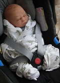 Так называемый "реборн" (кукла-копия новорожденного, сделанная из мягкого силикона) был смоделирован на основе фотографий, сделанных журналистами во время выписки Кейт Миддлтон из роддома в прошлом году.