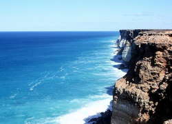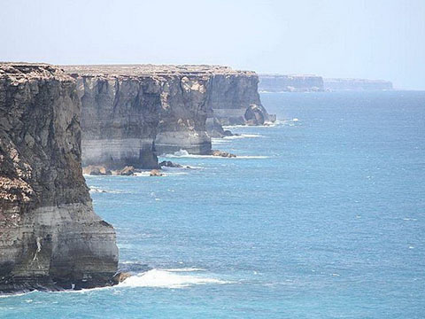 На севере Большого Австралийского залива в южной части Австралии находится обширная и пустынная равнина Налларбор - настоящий край света. Это самый большой в мире единый кусок известняка, занимающий площадь около 200 000 кв.км. Он тянется на 1100-1200 км с востока на запад. Поверхность равнины настолько плоская, что на 483 км здесь тянется прямая линия Трансавстралийской железной дороги. Равнина резко заканчивается утесами Бунда, которые образуют обрыв длиной в 200 км, изгибающийся вокруг Большого Австралийского залива.