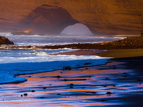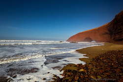 Легзира - живописный пляж, расположенный в 120 км к югу от Агадира в Марокко. Главная особенность Легзиры - удивительные глиняно-песчаные арки, протянувшиеся вдоль всего пляжа. При их виде появляется ощущение, что это берег шагает в океан, ступая огромными конечностями. Вероятно, эти арки для Марокко как пирамиды Хеопса для Египта, многие сюда едут посмотреть именно на них и заснять на свои камеры.