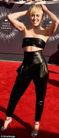 Майли Сайрус, по уже известной традиции, позировала с высунутым наружу языком. Дженнифер Лопез продемонстрировала свое подтянутое тело. Как известно, певица усердно худела и скинула пару килограммов, так что серебряное, откровенное платье прекрасно подчеркивало всю проделанную работу Лопез.