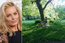 Голливудская звезда Марго Робби катается на велосипеде в парках Лондона.
